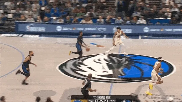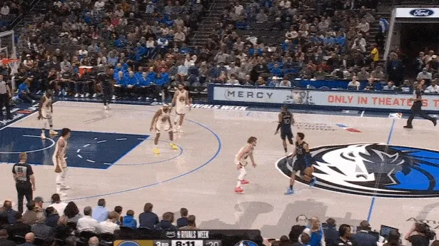 马绍尔持球过半场后立即呼叫布威掩护点名库里,“哈达威变向”启动右路突破,行进间撩起手臂合球并向中路行进,对抗接触的瞬间立即起抛投终结,颠进。一举将领先优势扩大到10分。