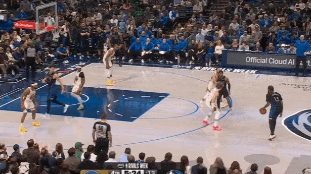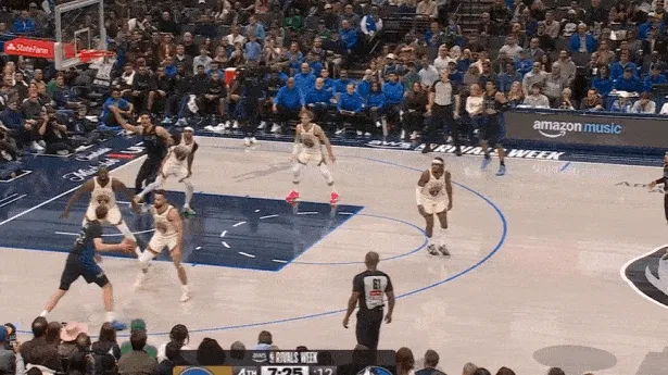 紧接着继续乘胜追击,过半场后立即起速并发动“Drag Screen”点名库里,行进至三分线使用小跳步后立即二次加速直杀篮下,过掉库里后顶着霍福德回收护框上篮打进。